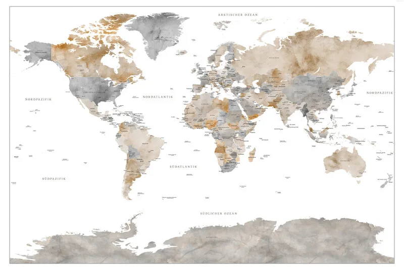 Tableau sur toile World map with cities in GERMAN, Matteo