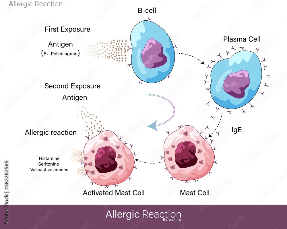 Photos Mechanism of Human allergic reaction caused by a foreign substance or Allergens