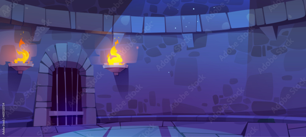 Tableau sur toile Medieval castle dungeon stone wall game cartoon vector background