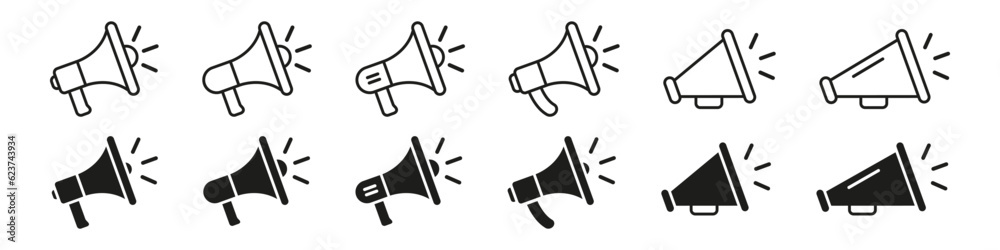 Megaphone icon. Loudspeaker vector set. Announcement sign isolated set on white background. Marketing megaphone sign.