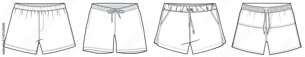 Photos men's shorts technical drawing vector illustration. CAD mockup.