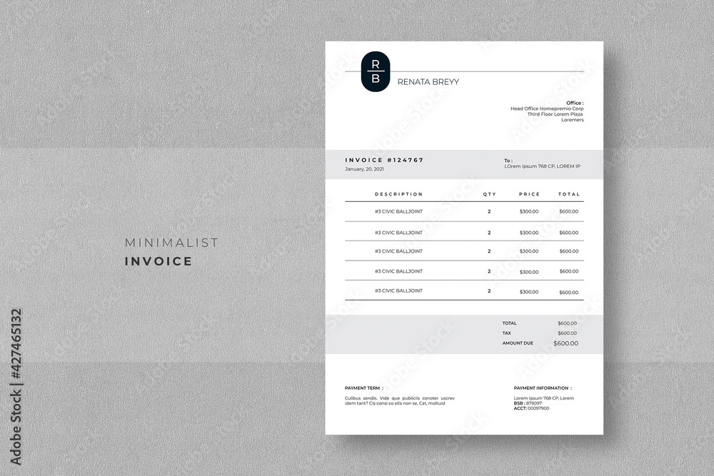 Photos Minimalist Invoice Easy to edit and customise, with a single page invoice desig