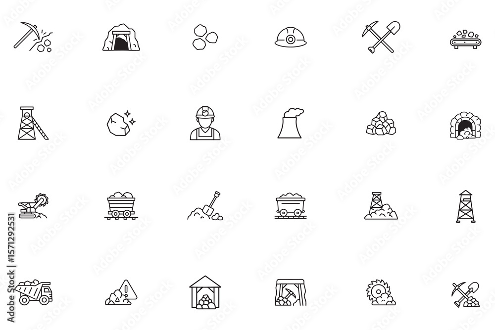 Photos Mining industry line icon set, simple outline symbols of coal extraction, quarry