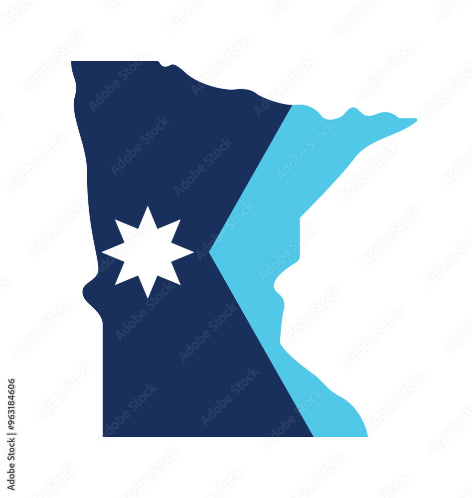 Tableau sur toile minnesota mn state map shape with new state flag transparent background