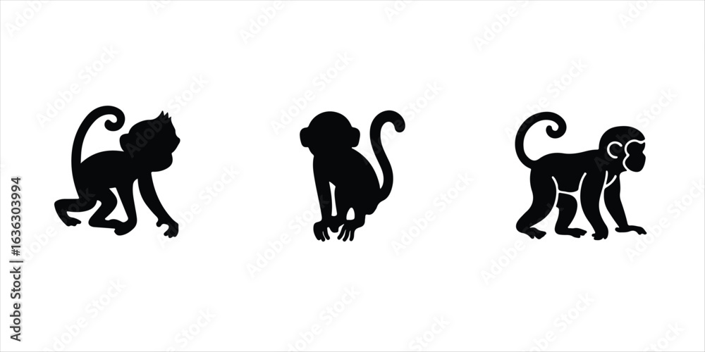 Photos monkey icon set hand drawn illustration on white background