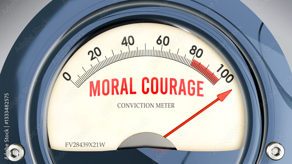 Photos Moral Courage and Conviction Meter that is hitting a full scale, showing a very high level of moral courage, overload of it, too much of it