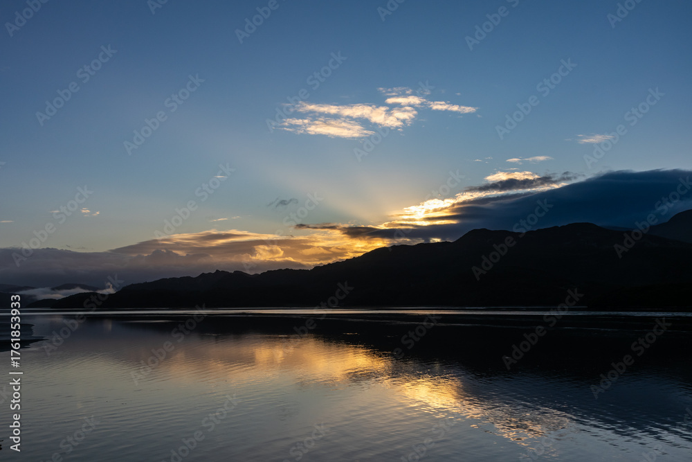Tableau sur toile Morning light over the Mawddach Estuary with reflections beneath distant hills