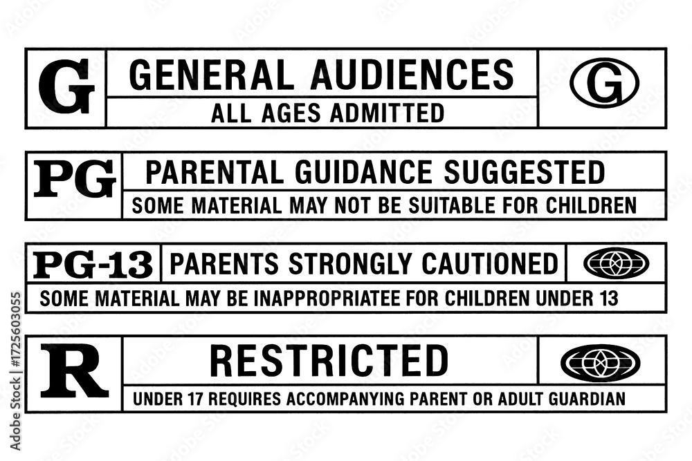 Photos Movie rating labels set with parental guidance and restricted categories, Transp