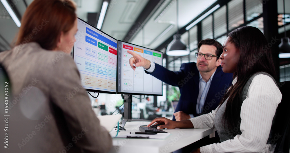 Photos Multiracial Manager Uses Kanban Software On Laptop