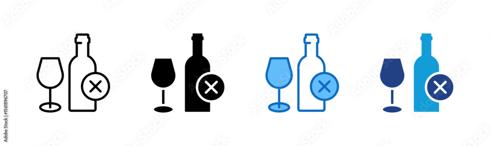 Photos No Alcohol - Multi Style Icon Sheet Vector Design - wine bottle and glass with a