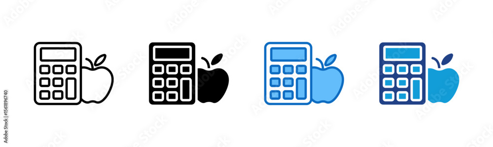 Photos Nutrition Count - Multi Style Icon Sheet Vector Design - Calculator and apple, r