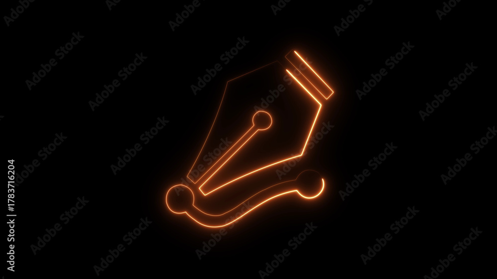 Photos Orange neon outline of a fountain pen nib on a black background writing calligra