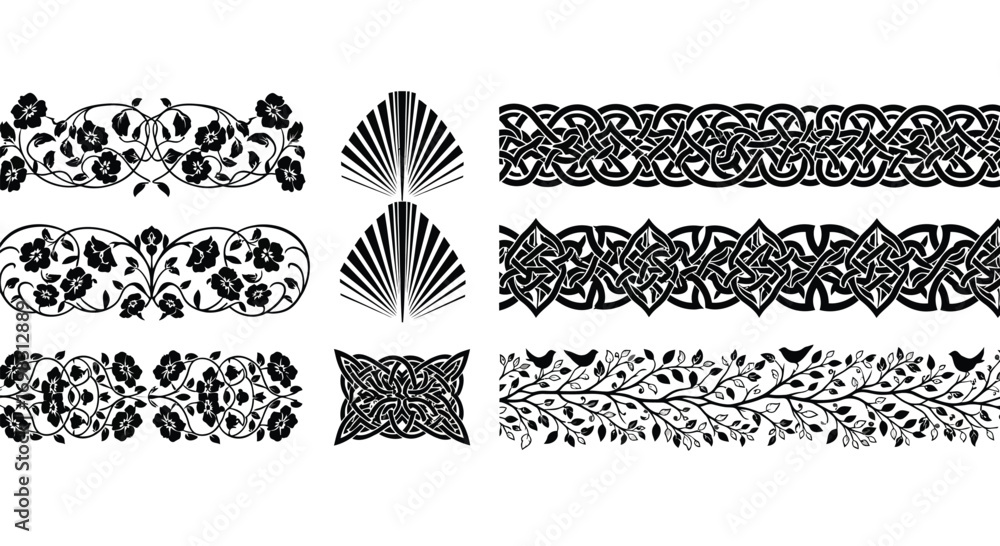 Tableau sur toile Ornate decorative borders and flourishes set intricate floral and geometric patt