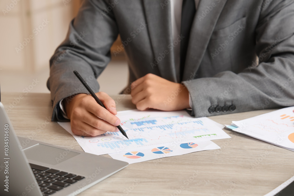 Papier peint Male economist working with diagrams at desk in office, closeup