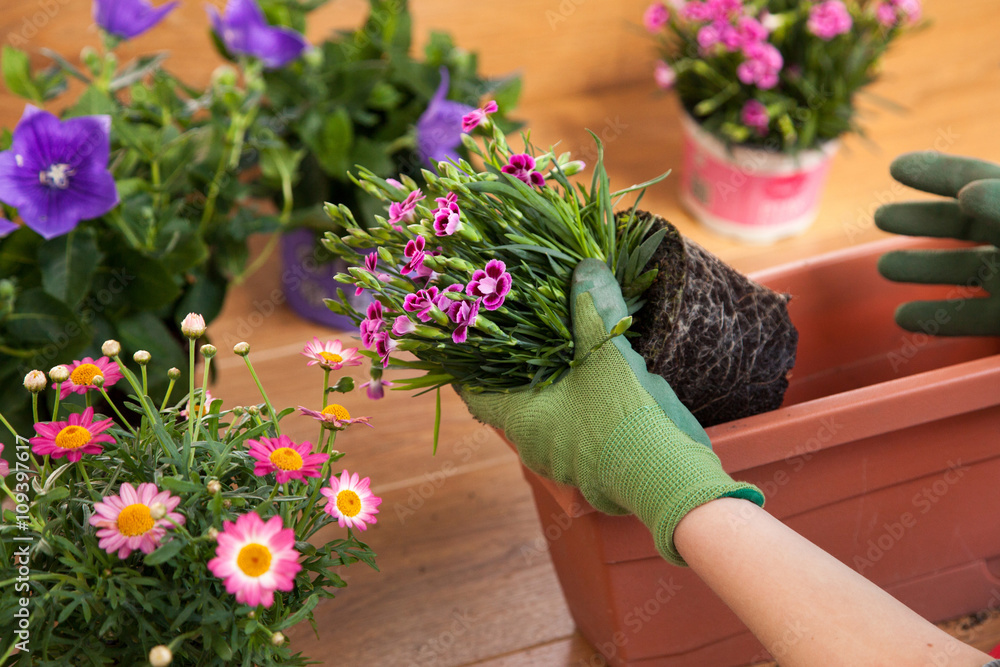 Papier peint Plantation de fleurs dans une jardinière