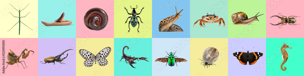 Papier peint Educational collage showcasing various invertebrate species, highlighting biodiv