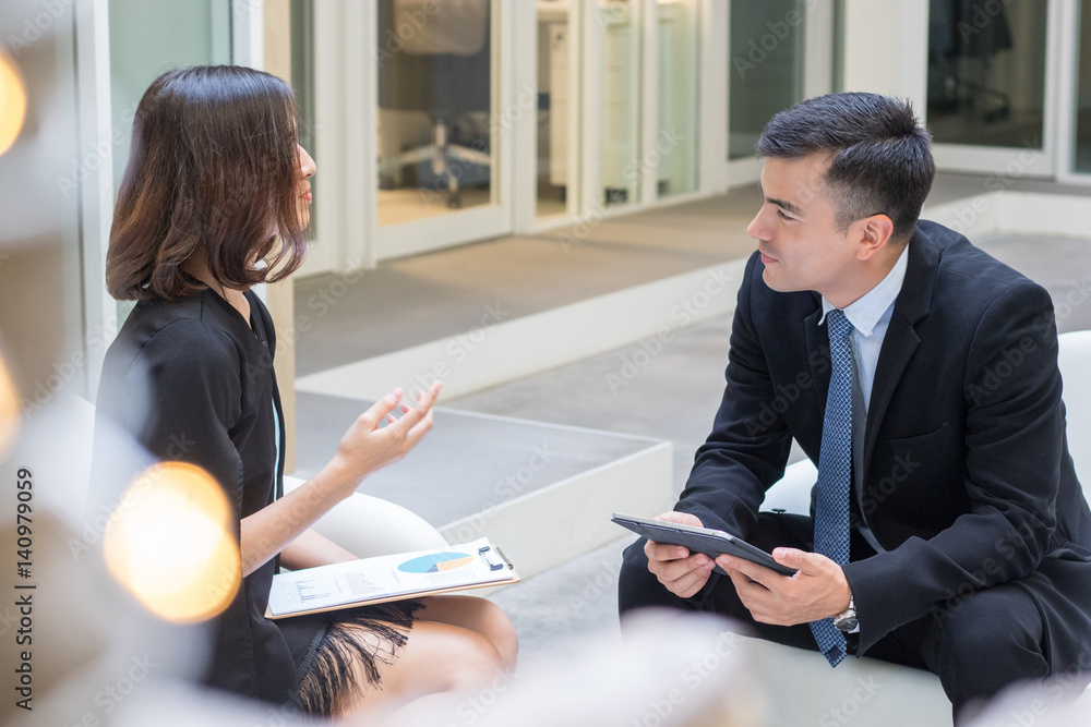 Papier peint Two business people discussing and talking