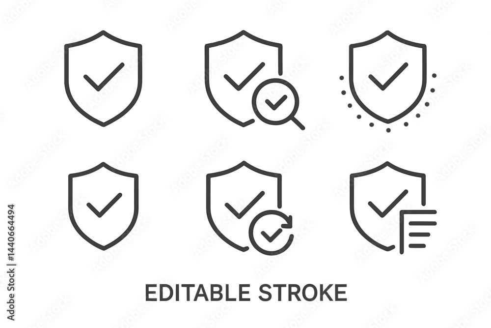 Papier peint Collection of shield icons representing security and verification with editable