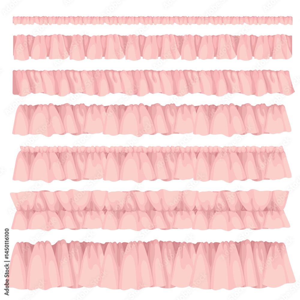 Papier peint Pink Ruffle Trim Set Vector stock illustration Cute Fabric Borders in Various St