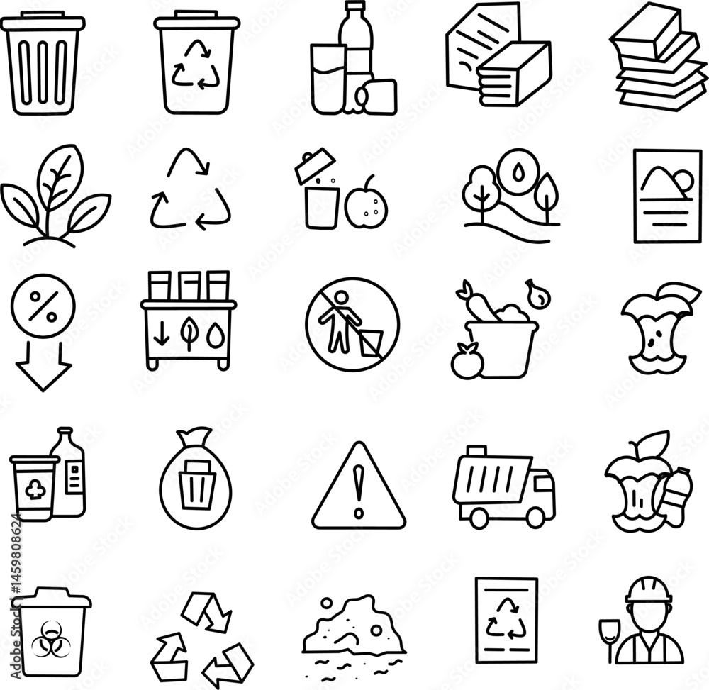 Papier peint Waste Management Line Icon Set – 25 Unique Vector Symbols