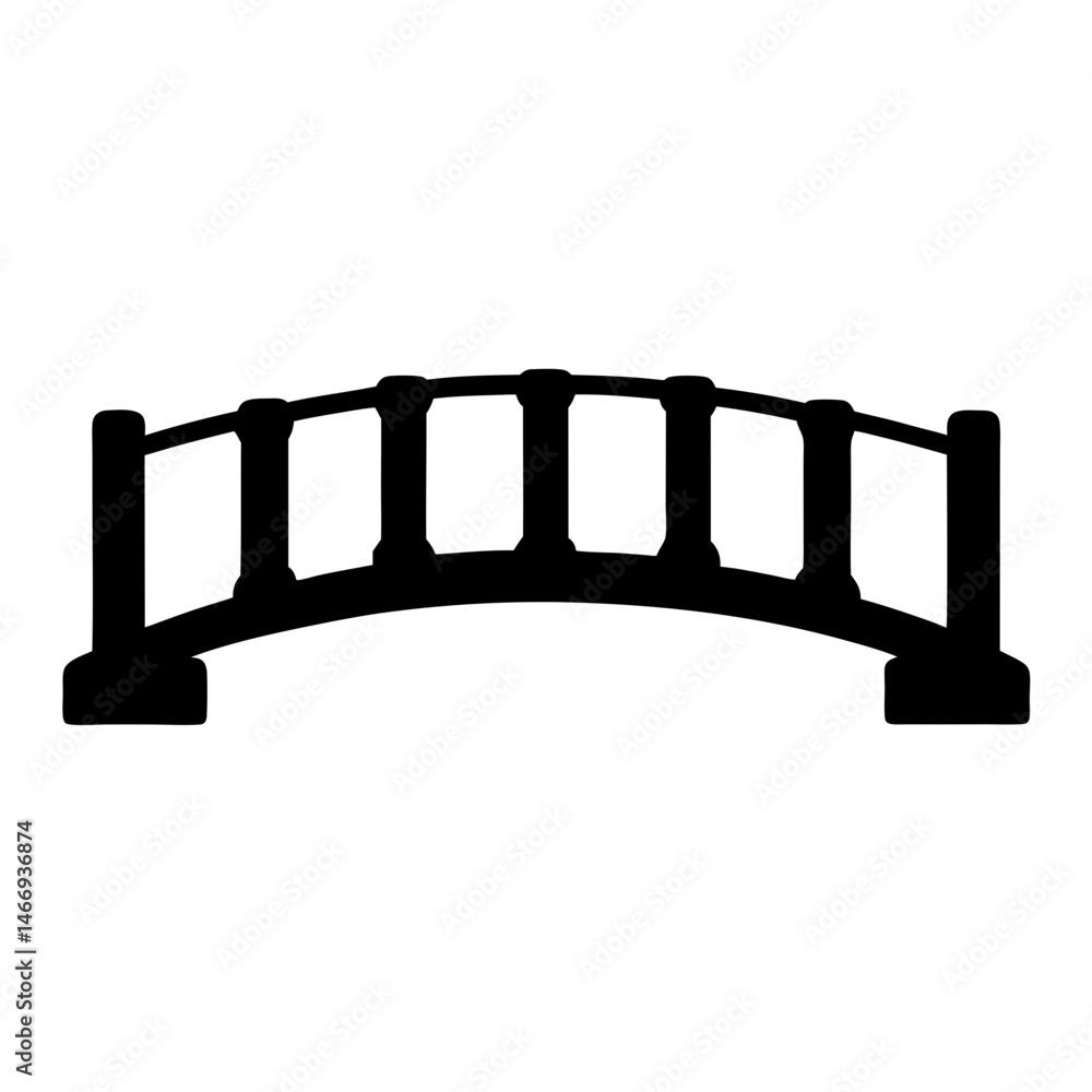 Papier peint Silhouette of a small decorative arch bridge with sturdy architectural elements