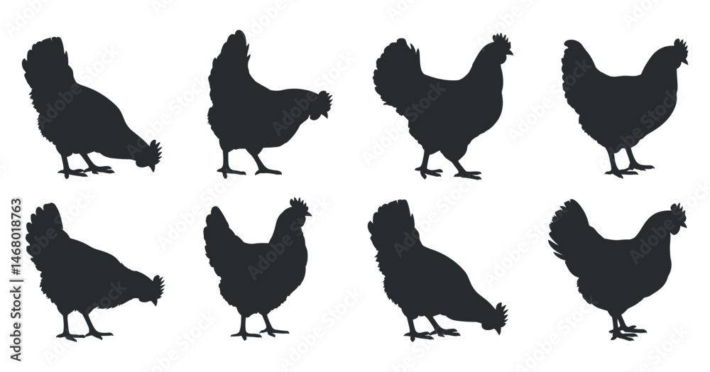 Papier peint Collection of Eight Chicken Silhouettes in Various Poses