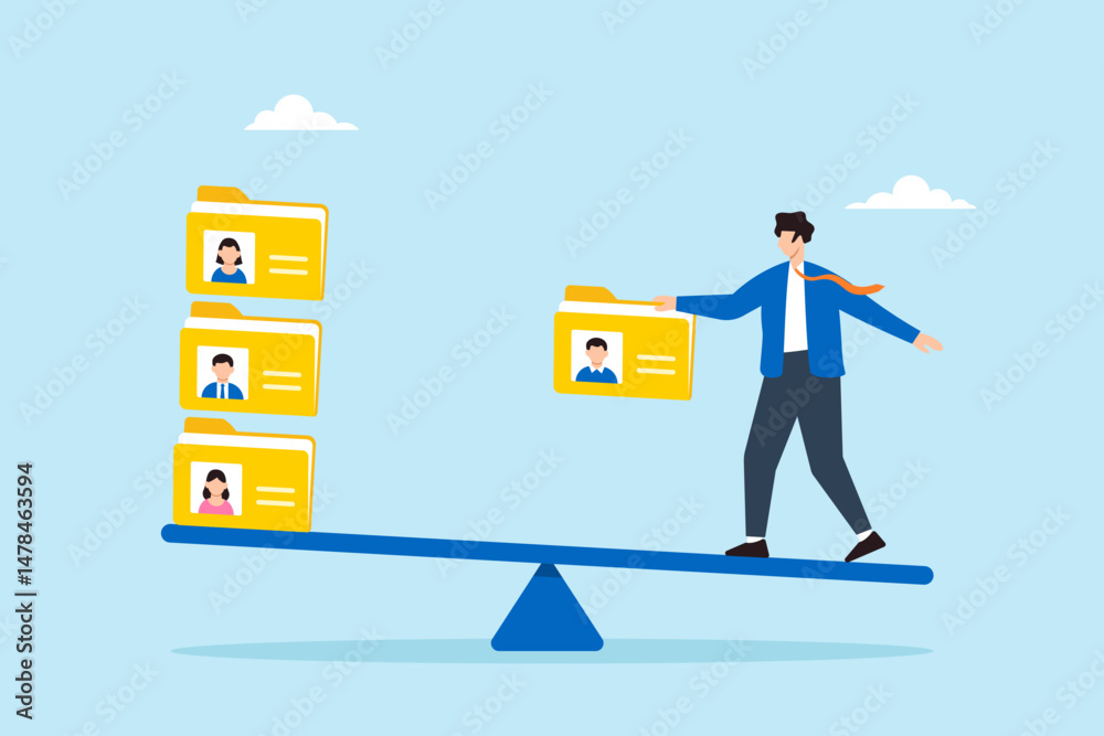 Papier peint Flat illustration of human resource manager balancing candidate profile folders