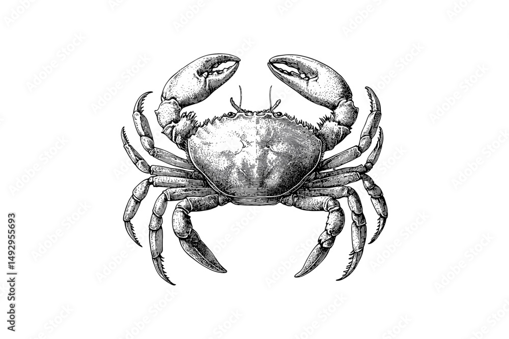 Papier peint Hand-drawn Crab Illustration, Vintage Sea Life Print, Old Engraving Style, Rusti