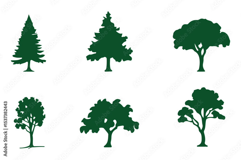 Papier peint silhouette tree line drawing set, Side view, set of graphics trees elements outline symbol for architecture and landscape design drawing