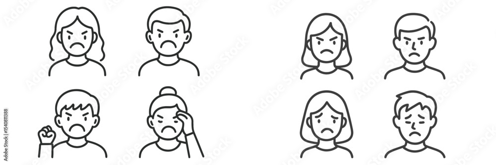 Papier peint Expressions of frustration and sadness captured in simple line art drawings depi