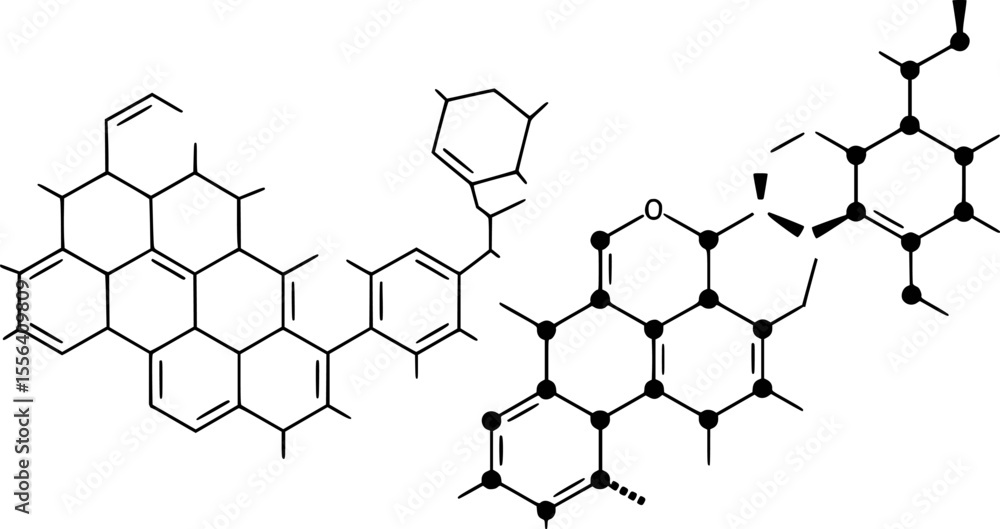 Papier peint Complex organic molecular structure diagram black white organic chemistry chemic