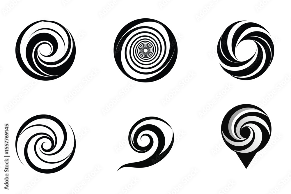 Papier peint Abstract Spiral Swirl Logo Collection in Black and White Style