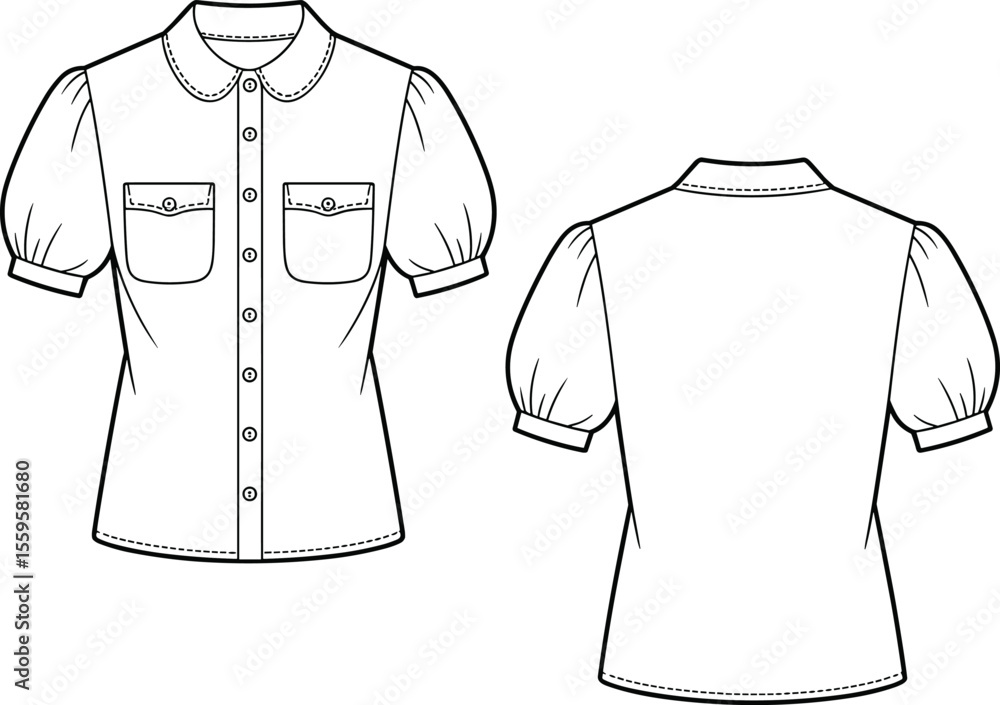 Papier peint Stylish Women's Blouse with Short Puff Sleeves, Peter Pan Collar, and Flap Pocke