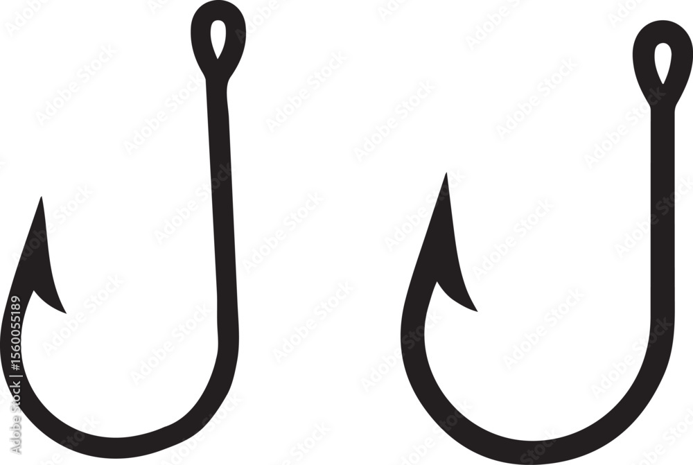 Papier peint Set of fishing hooks, fish hook logo icon, hook icon, fishing hook silhouette ve