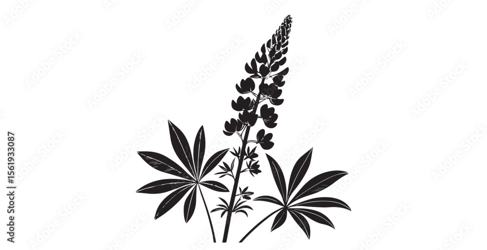 Papier peint Elegant black and white silhouette of a blooming lupine flower silhouette