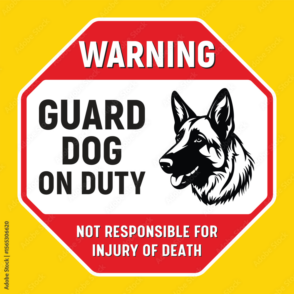 Papier peint Guard dog warning sign, Guard dog on duty illustration, Warning sign symbol