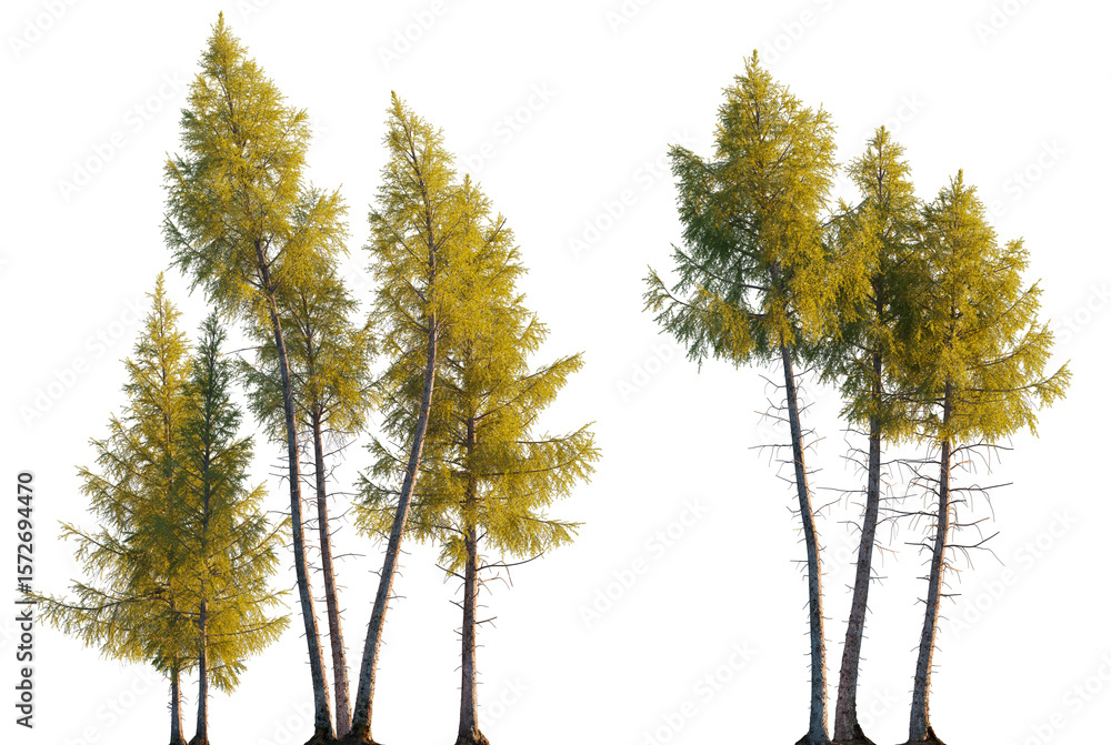 Papier peint Larix occidentalis, Western Larch Tree Clump in Sunlight Isolated