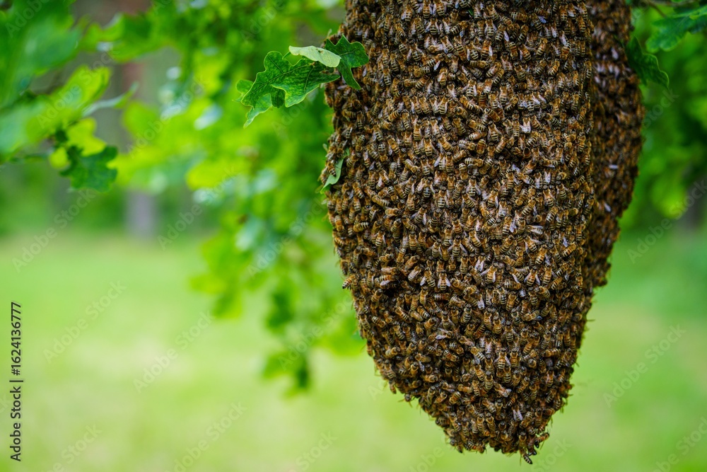 Papier peint A stunning image of a honey bee swarm on a branch, showcasing nature s beauty and the crucial role of pollinators