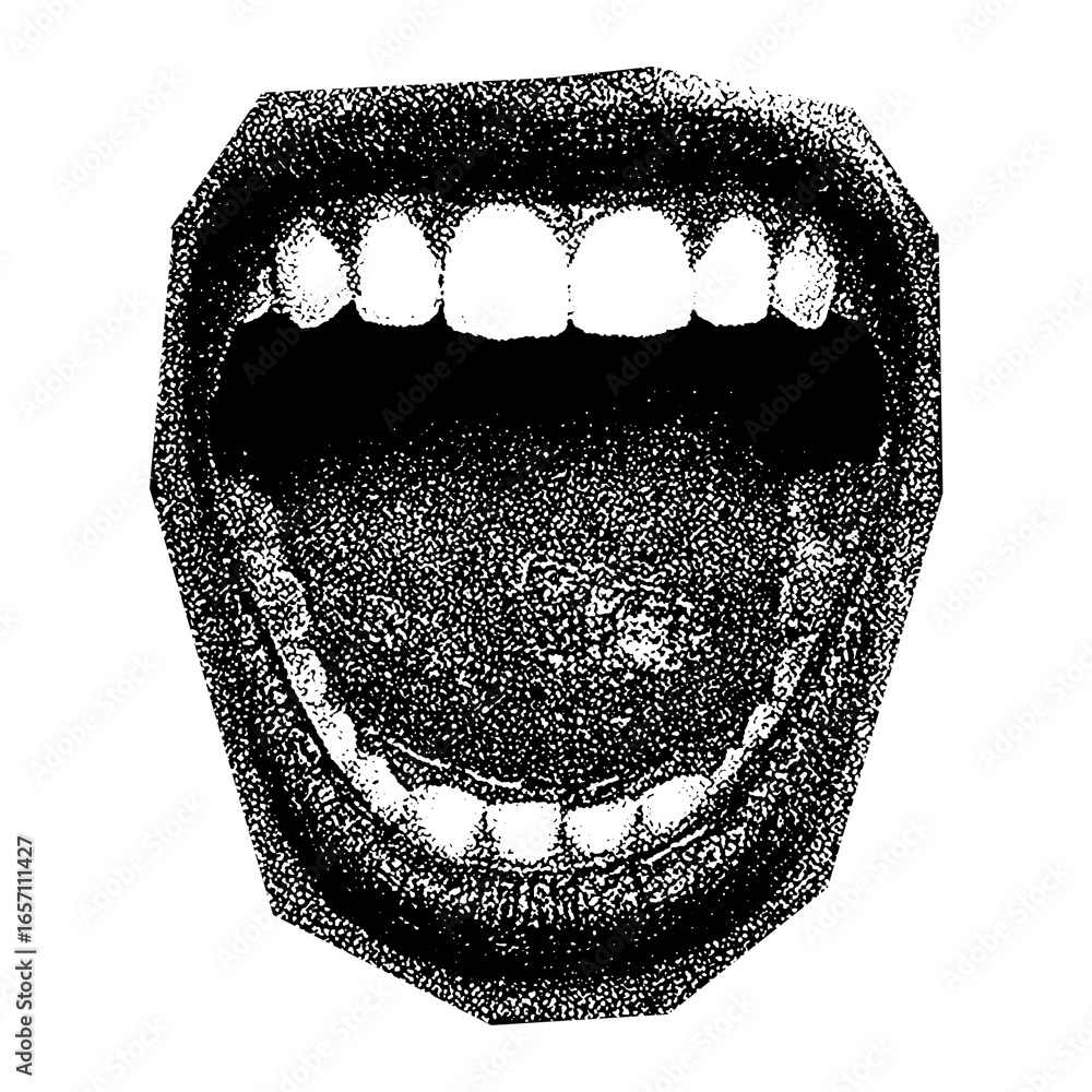 Papier peint Mouth in scream with halftone stipple effect, retro grunge grainy y2k style pop art