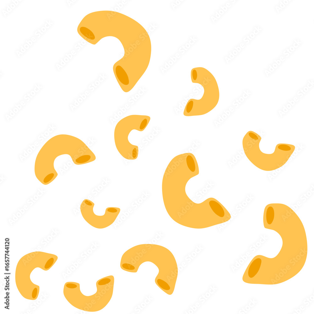 Papier peint Scattered elbow macaroni pasta pieces on a white background, uncooked and ready to be cooked