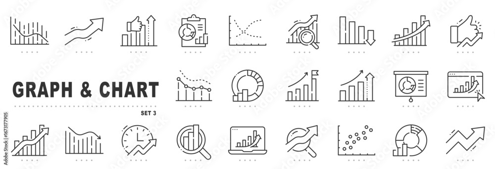 Papier peint Graph and chart icons for analytics and data dashboards, showing growth trends,