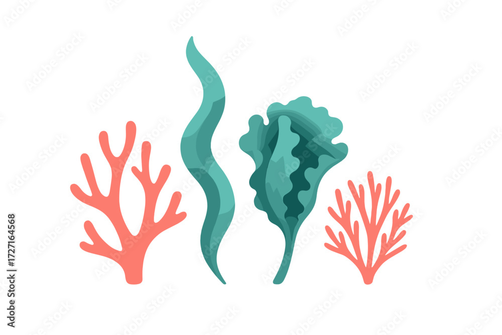 Papier peint Vibrant marine life elements with coral and aquatic plants