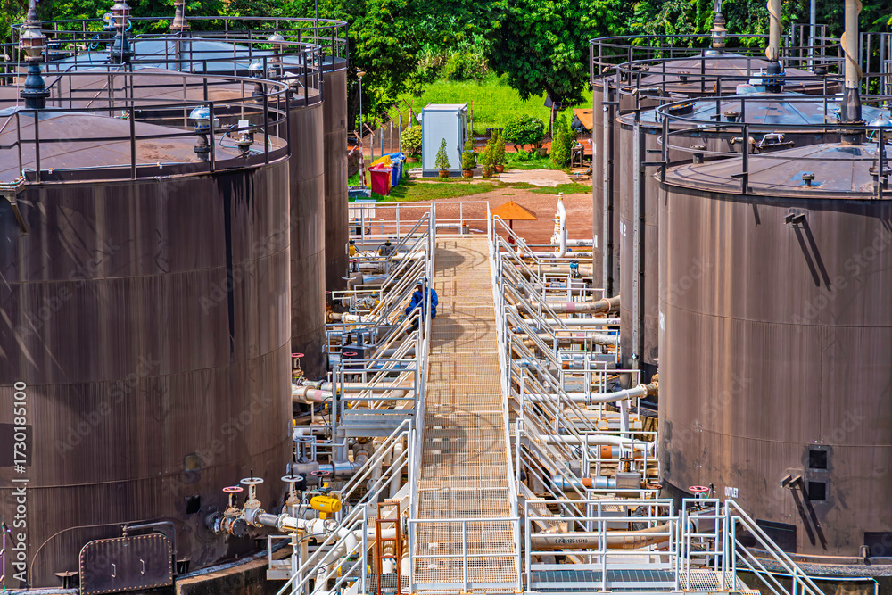Papier peint Tank oil black storage fuel gas container tanks in petroleum Refinery Industri