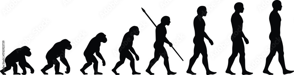 Papier peint Human evolution silhouette from primate to modern man, walking stages, flat vect