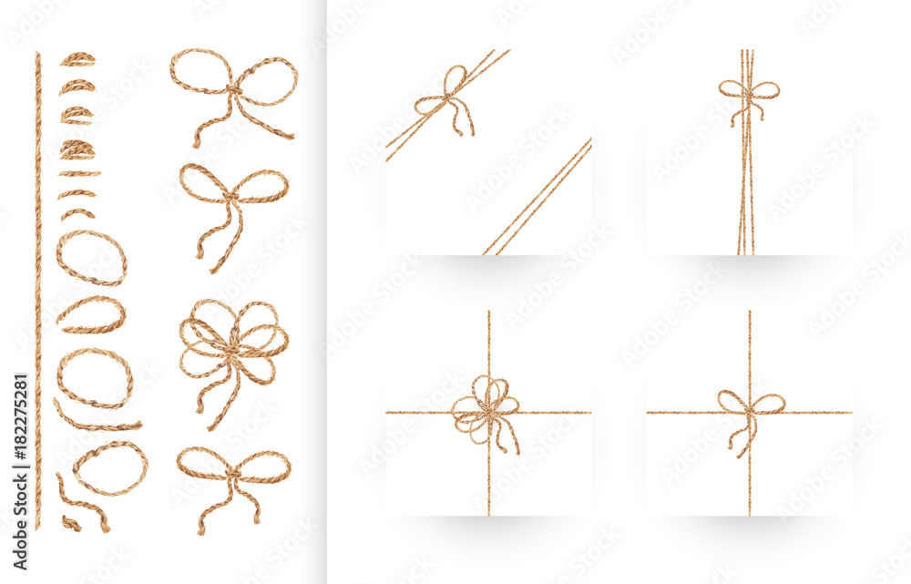 Papier peint Set of ribbons, bows and ornaments made of natural linen rope and twines