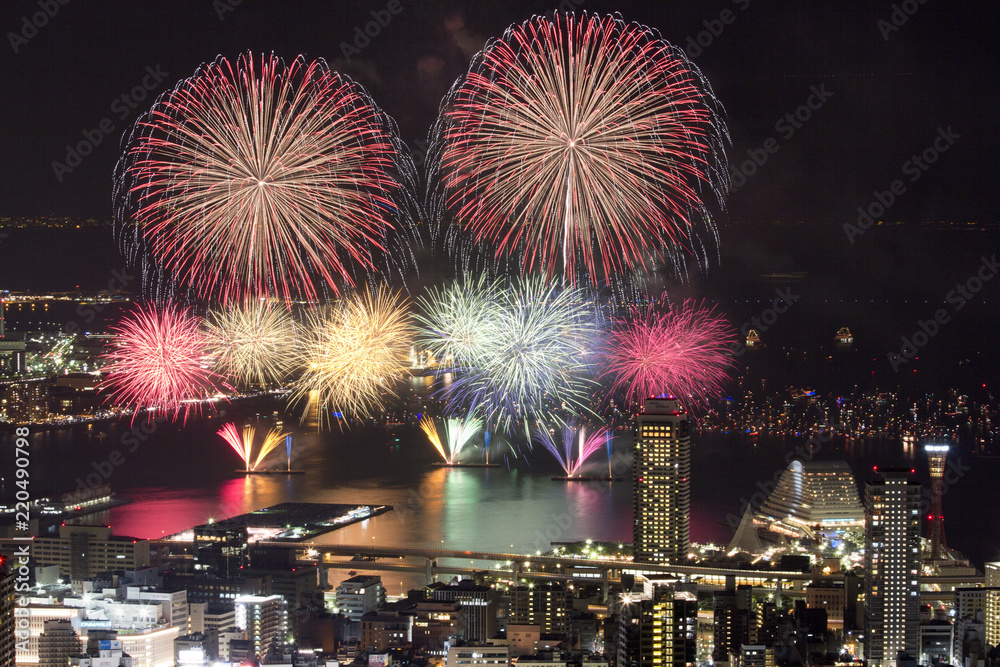 Papier peint 花火と神戸の夜景