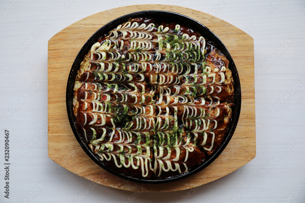 Papier peint Japanese food okonomiyaki , Japanese pizza on wood plate