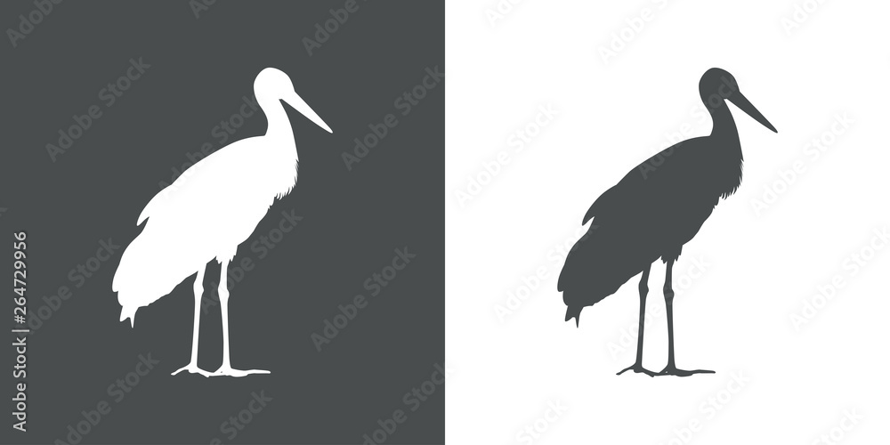 Papier peint Icono plano cigüeña de pie en gris y blanco