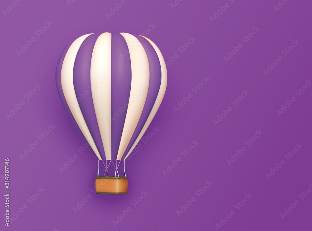 Papier peint Hot air balloon violet white stripes, colorful aerostat on violet background
