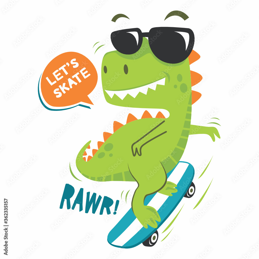 Papier peint Cute dinosaur skate design vector illustration ready for print on t-shirt